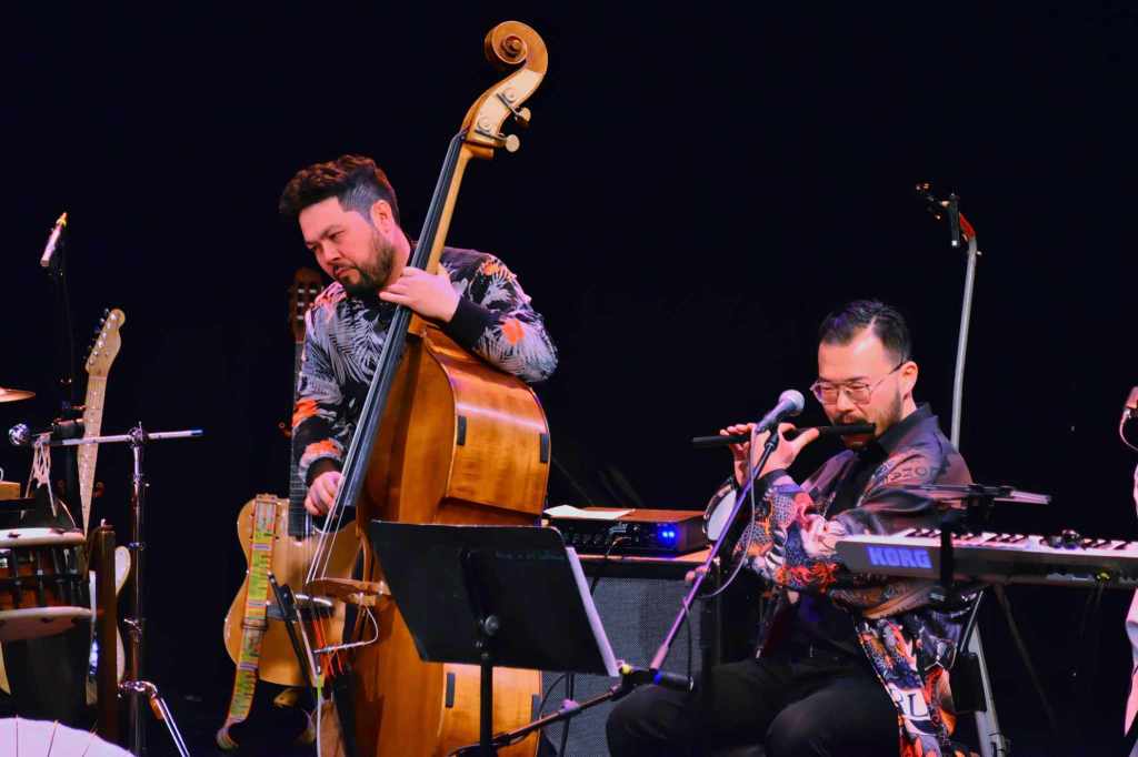 The second set featured the Donné Roberts Band and Nagata Shachu. Originally from the island nation of Madagascar, Donné brought his unique Malagasy melodies and rhythms to a brand-new audience. Some of his most memorable songs including Malembo and Ariengue, pulsated in a fresh and delicious way with the thunderous taiko drums of Nagata Shachu. A familiar piece by Kiyoshi Nagata, Furyu, brought back memories of Nagata Shachu’s performances gone by, this time with a new twist. Yukiko Tsutsui’s Inori complemented the night beautifully. Yukiko is a member of the Donné Roberts Band who infuses their music with her delicate Japanese sensibilities on a regular basis. The other outstanding performers at From Japan to Madagascar were Heidi Chan, Kevin Zi-Xiao He, Ken Yoshioka, Shinya Sato, Brian Kobayakawa, Andrew Siu, Atsushi Kato, Larry Graves, and Chris Adriaanse.